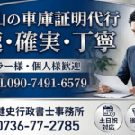和歌山県紀の川市で車庫証明申請の代行をしている橋本健史行政書士事務所です。